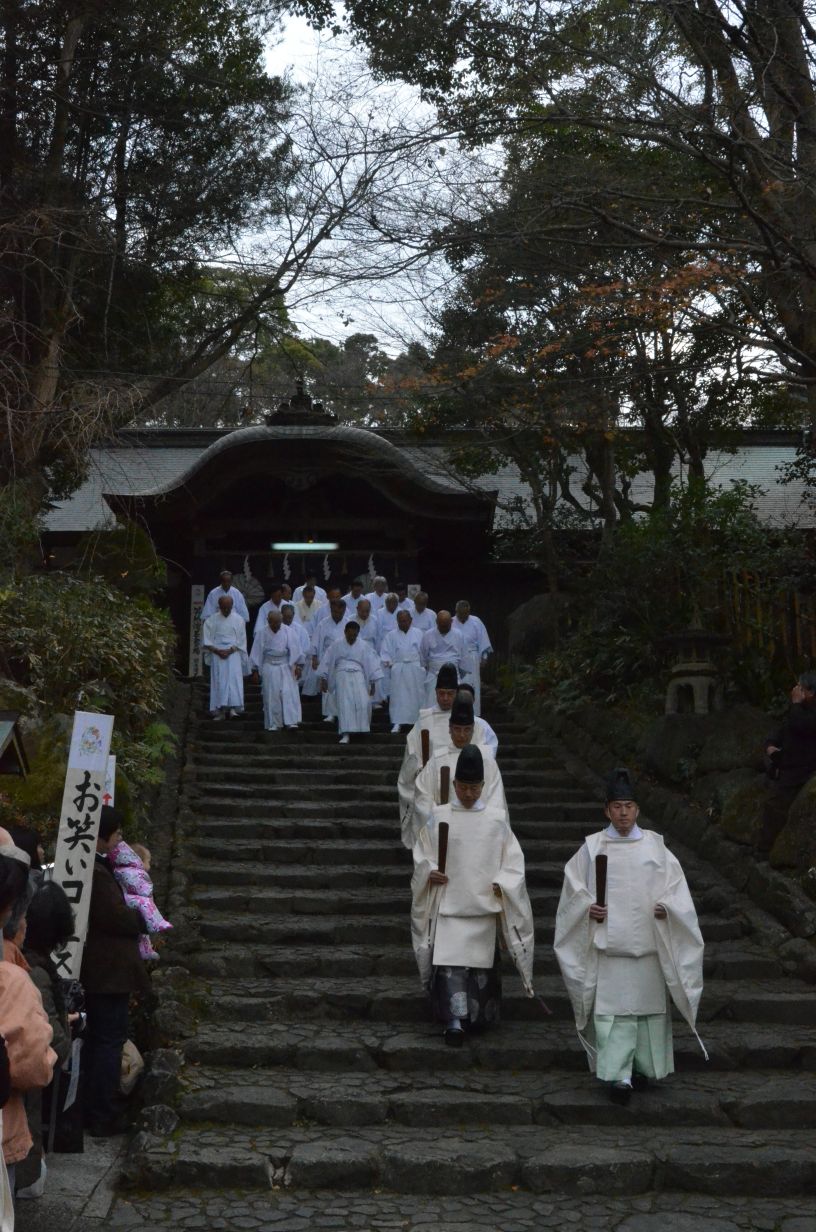 開始前に、宮司の講話。この祭り自体が神話に基づくものだとか。